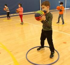 During our winter athletics season, we used all twelve Barn hoops every day for practice, so we kept them all raised to 10 feet. All winter our physical education students asked, “When is our basketball unit?” Those that came to Friday Night Hoops couldn’t wait to start draining buckets and doing their best Steph Curry impersonation. Now, with our winter athletics season over, we’ve lowered the hoops, and our younger students are making it rain.