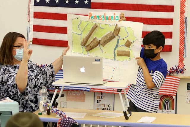 The third grade team reimagined their beloved state project again this year! With research and other materials created by their teachers, the third graders studied changemakers from their state, national parks, state animals, and Native American tribes who once inhabited the land. They transformed their work into pieces of writing, posters, and visual models to reflect what they learned and wanted to share. Students created poster-sized landform maps as well as state maps on grid paper to determine the actual area and perimeter of each state using their data and map scales. The state project concluded with a virtual State Celebration, where guests saw highlights of student work and heard every student speak and reflect on what they learned about their states and themselves throughout the entire process.