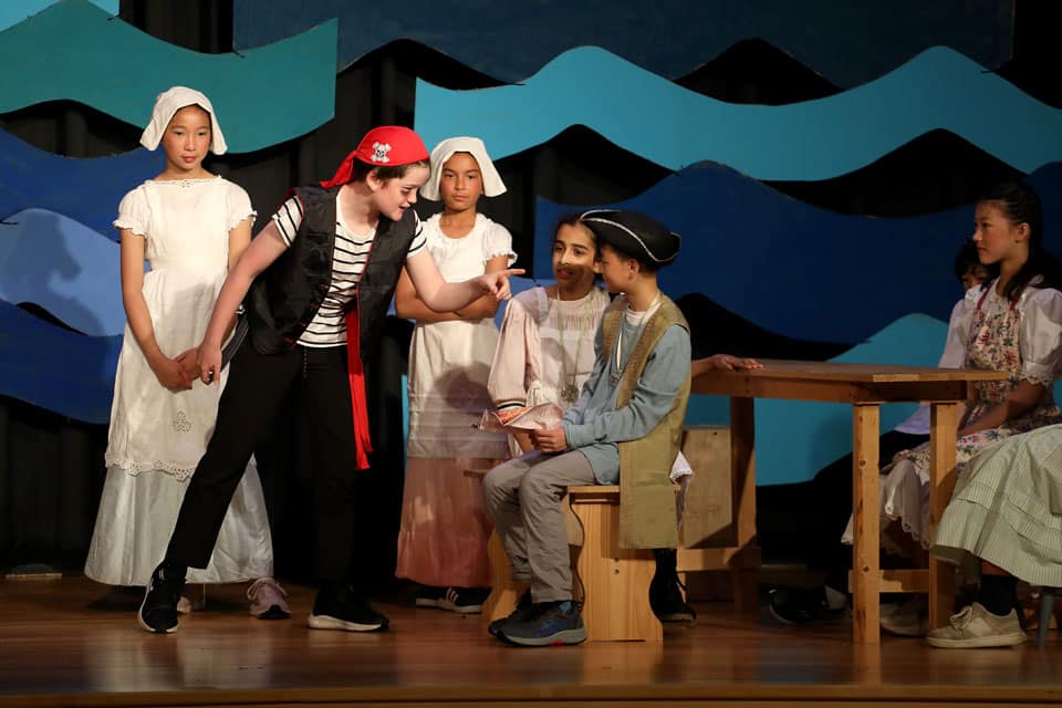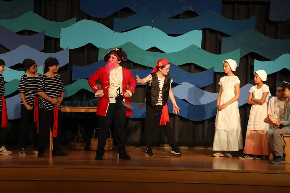 On Thursday and Friday, May 15 and 16, fifth graders performed the hilarious play, “Pirates of the Curry Bean” to packed audiences in the Palandjian Arts Center.