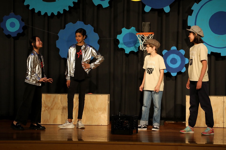 On Friday, May 24, 2024, the fifth grade performed the play, “Bots!”, to a packed audience in the Palandjian Arts Center.