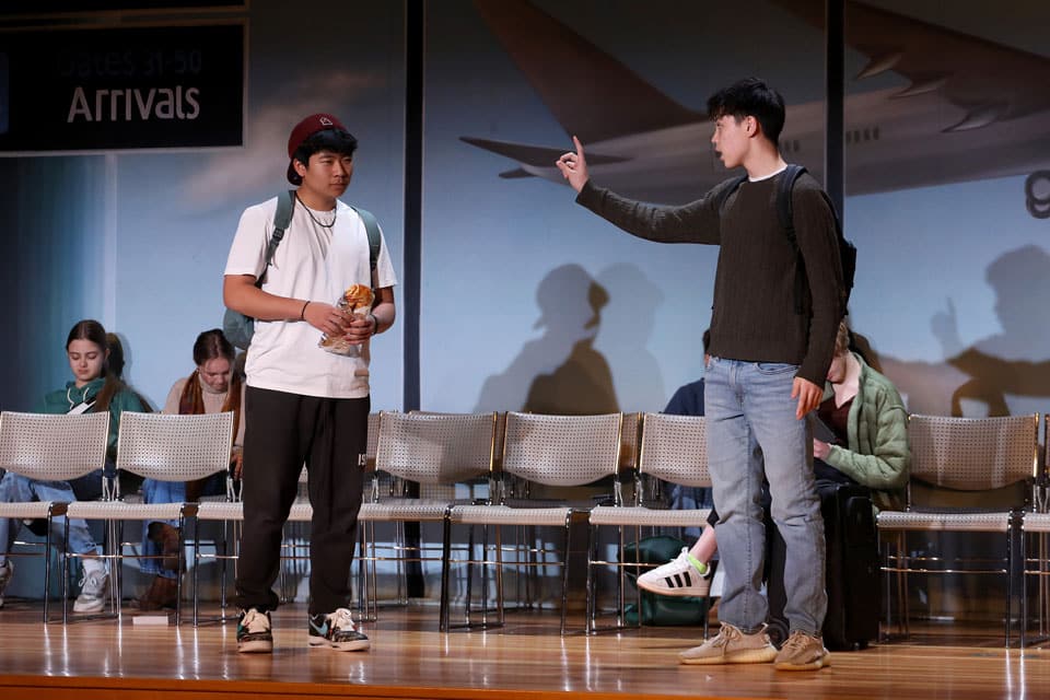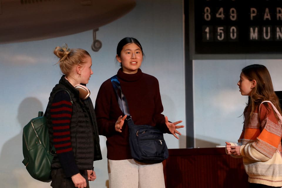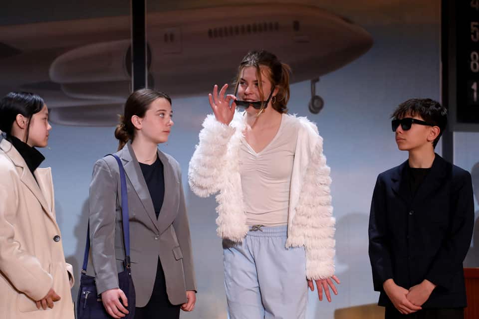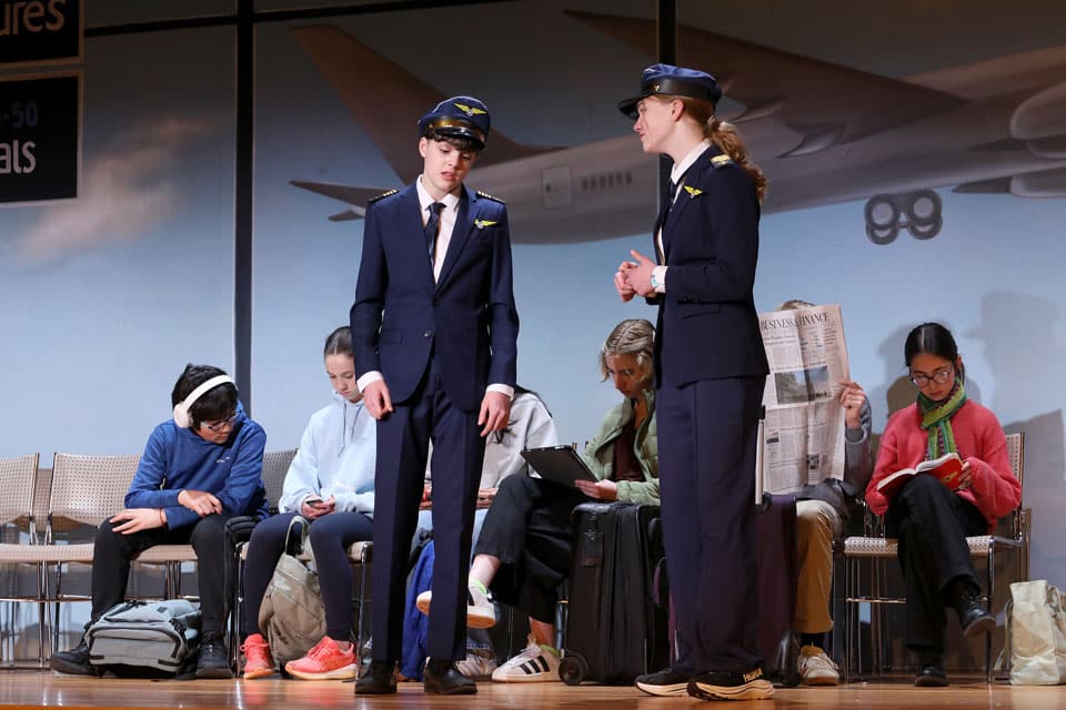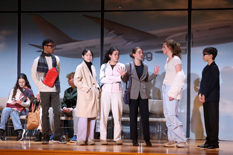 The Grades 7 & 8 play, Thirty Minutes Till Boarding, was performed for packed audiences in the Palandjian Arts Center, Friday and Saturday, March 13 and 14, 2026.