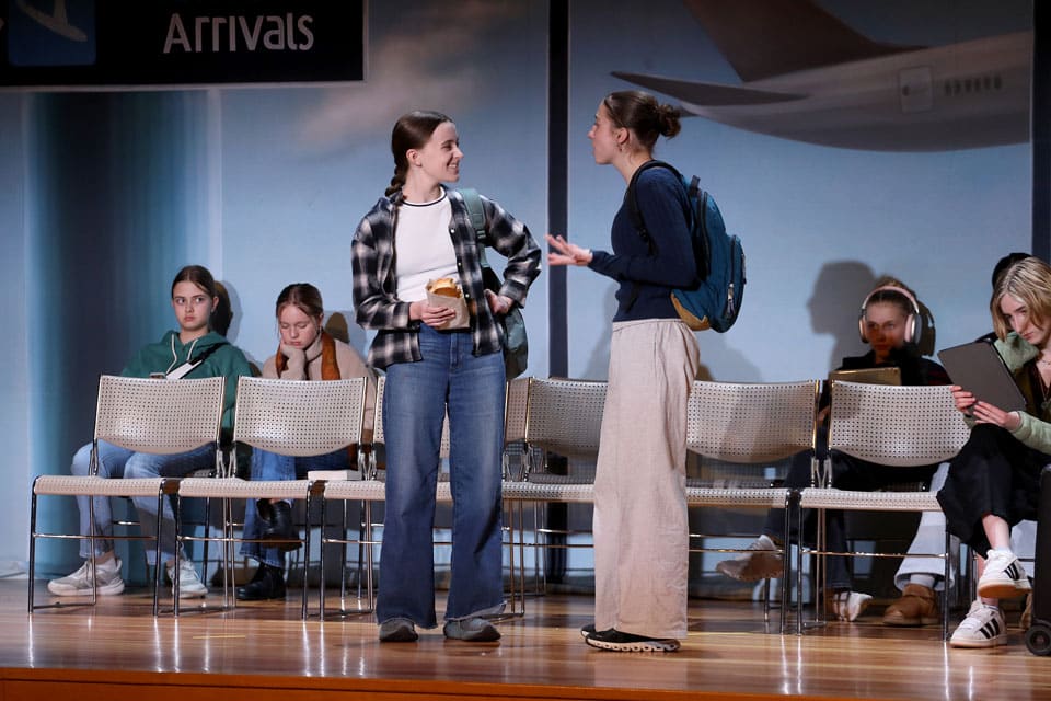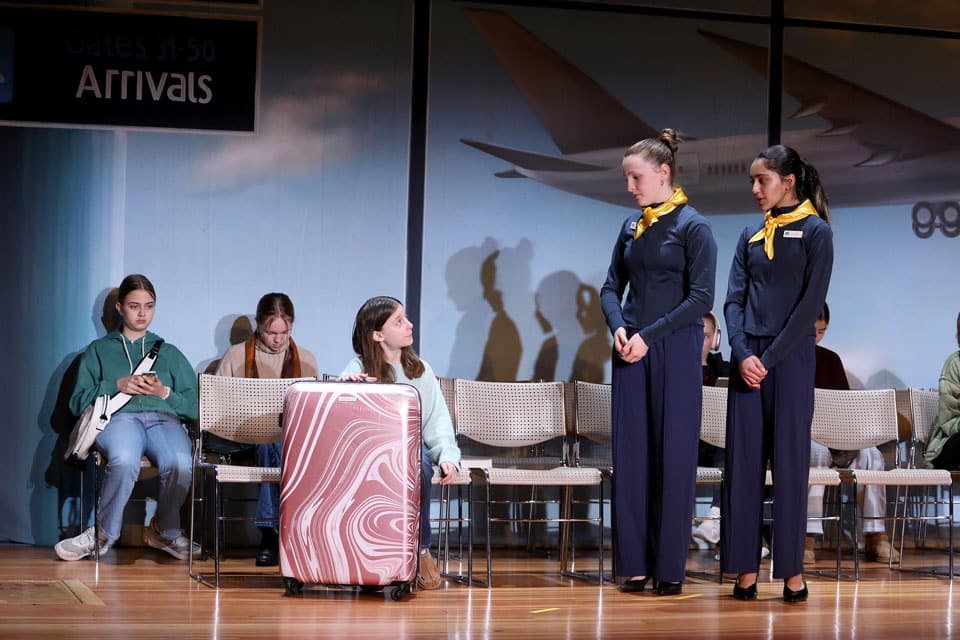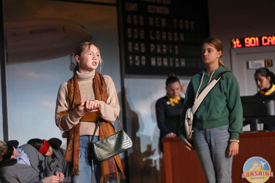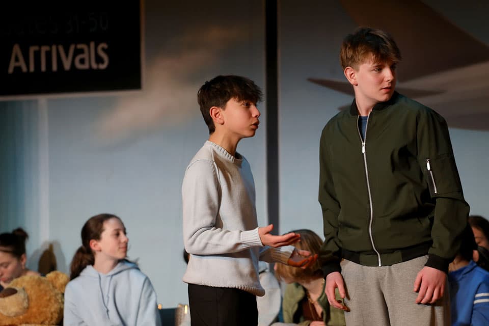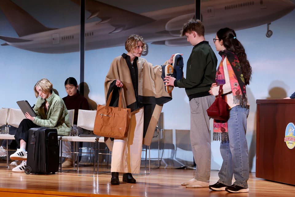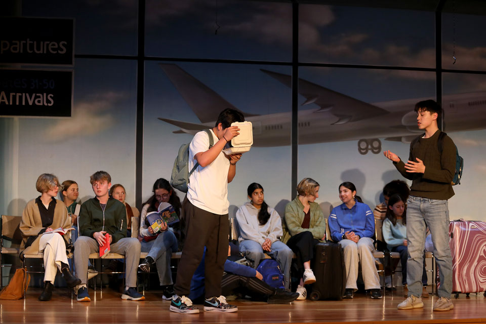 The Grades 7 & 8 play, Thirty Minutes Till Boarding, was performed for packed audiences in the Palandjian Arts Center, Friday and Saturday, March 13 and 14, 2026.