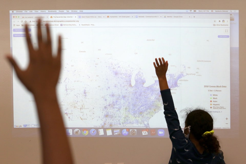 The fifth grade humanities program fosters student enjoyment of literature and provides rich experiences for students to become fluent readers and researchers. A variety of quality texts expand students’ vocabulary, promote literal, inferential, and evaluative reasoning, and develop students’ word recognition skills and comprehension. Students are taught in both whole class and small groups and receive direct instruction. Teaching techniques are student-centered and encourage higher-order thinking skills. Large or small group activities may include: hands-on activities, role-playing, debates, creative projects, oral and silent reading, discussion, research, and analyzing primary documents.