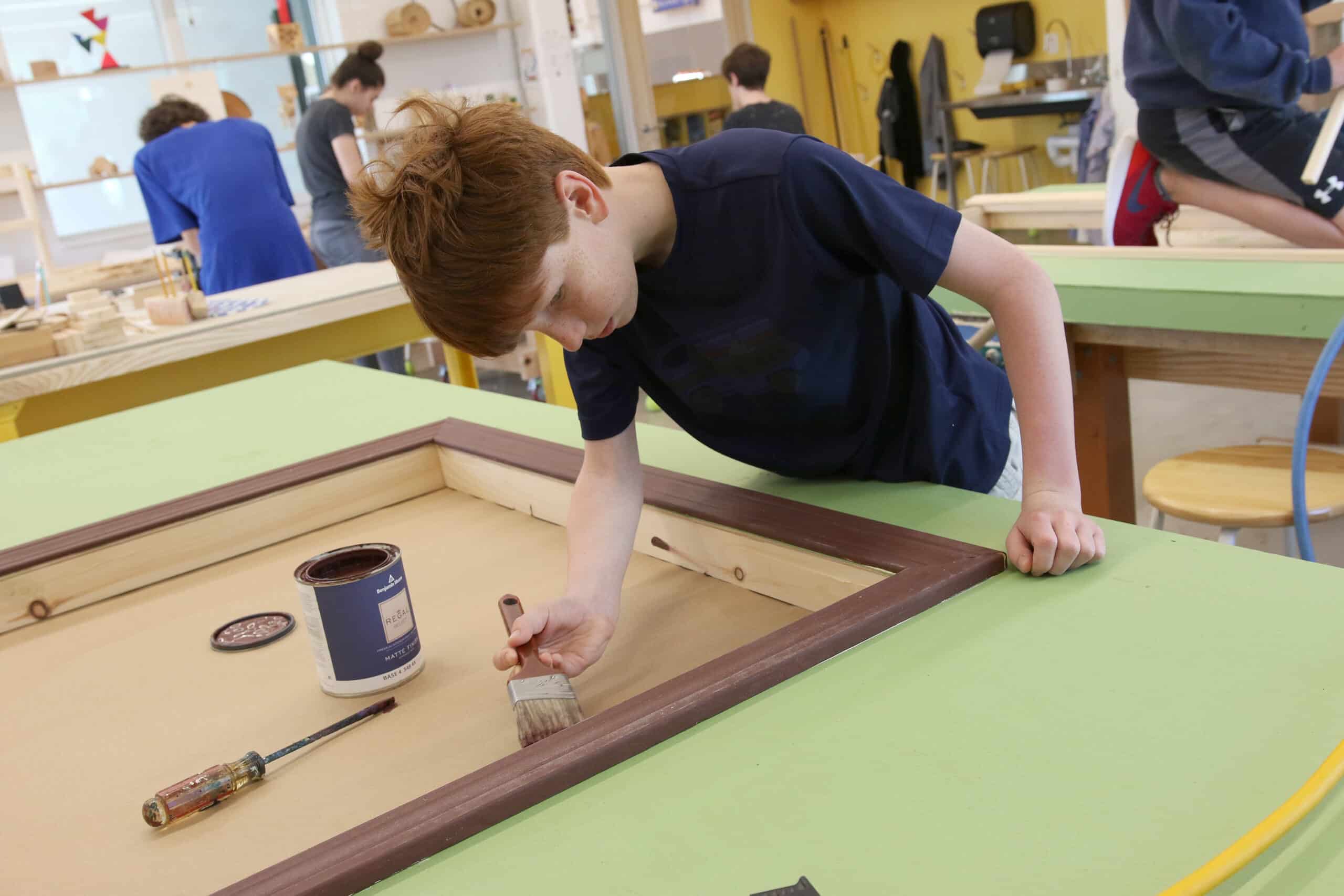 The middle school student set crew is hard at work creating the stage set this year’s grades 7 and 8 play, Babka Without Borders. The crew is making 10 wall flats with windows and doors, along with a counter and podium. Through this process, the set crew helps with all aspects of bringing these scenes to life, from the initial designs to building and painting each piece to final installation on the stage.