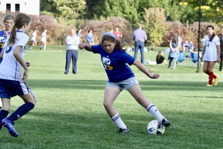 After a winless 2021 campaign and a tight one-goal loss in their season opener, the JV soccer team finally broke through this week with a commanding 2-0 win on the road against Carroll. The outcome was never in question with the Blue & Gold controlling both ends of the field all afternoon. Sixth grader Adam Ahmed secured the shutout between the pipes, receiving stellar defensive play from eighth grade defender Natalie Jean. Classmates Mylo Rosenfeld and Copeland Maier tallied goals for an offense that created multiple chances in each half. Other highlights included Genevieve von Rekowsky’s strong clears, Duncan Beirne’s well-rounded play, Sahana Miduturu’s runs to goal, and Penny Gottesman’s accurate passing. Collectively, it was a great team effort from the Blue & Gold. Players and coaches have been working hard to come together as a team and the hard work is clearly paying off.