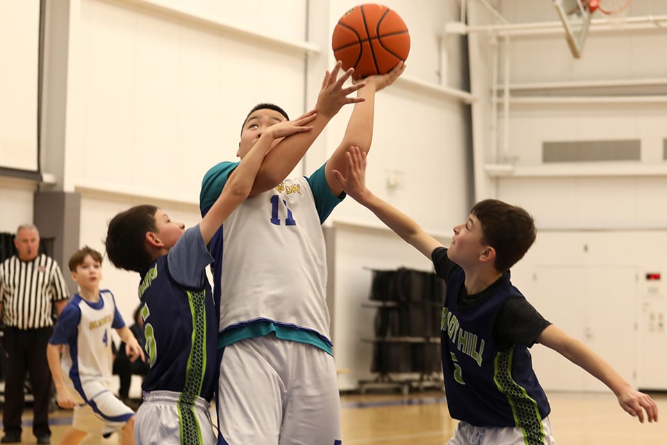 The girls’ JV basketball team followed with a terrific defensive performance, anchored by eighth graders Rowan McCoy and Eileen Luo, who each recorded double-digit blocked shots. Sixth graders Lucy Rodriguez, Zoe Masozera, Serena Rosenfeld, and Gwen Chen applied excellent on-ball pressure throughout the game, setting the tone with their energy and effort.