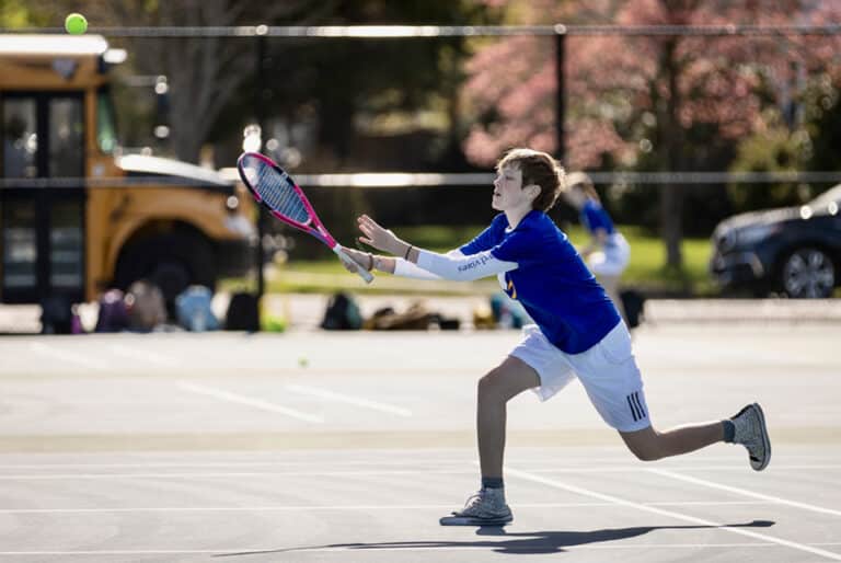 After a lopsided loss to start their season, the JV tennis team turned things around this week against Beaver with a 6-2 win. All six wins came in doubles matches, as Belmont Day showed strong communication and balanced team play. A perfect example of this was “Team Kiraly”, where brothers Alexander Kiraly and Henry Kiraly teamed up for a 6-2 win and worked instinctively together on the court. Equally as impressive was the 6-0 shutout win for doubles partners Kalkidan Shiferaw and Duncan Bierne who relied on their experience and strong serves to blank their opponents. Other highlights included a tight win (4-3) from doubles team Kali Owens-Schwartz and Josie Steveneson and a comeback victory (6-5) for the sixth grade duo of Vatche Balikian and Jack Ward. Rounding out the victories on the afternoon were Julia Popa and Clem Craddick (6-4), as well as Isla Smith and Madoka Hubbard (6-1). Collectively, it was a terrific effort from the Blue & Gold who is clearly trending in the right direction this spring.