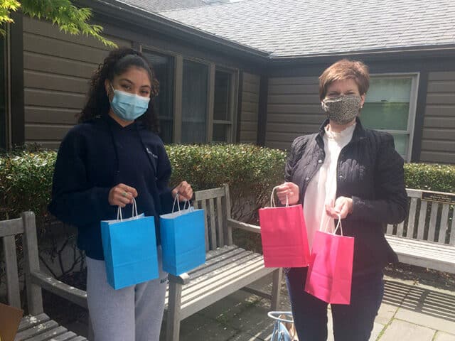 Eighth grader Amanie Yusef studied chemotherapy for her Capstone journey. In addition to writing a research paper, creating an educational animated movie, and conducting an interview, Amanie wanted to reach out to children undergoing chemotherapy. Due to the pandemic, connecting with an organization to work with directly was challenging. She went ahead and prepared thoughtful care bags for children with small craft activities and notes. On Monday, she was able to bring her project to fruition. Maureen Burge, from Care Dimensions, came to BDS to receive the bags and tell Amanie about her organization, which supports children and families on the North Shore. Maureen worked hard to arrange a way to deliver the bags directly to the children, and she drove quite a distance to meet Amanie. We are impressed with Amanie’s dedication to carrying out her idea and thankful to Maureen and Care Dimensions for their amazing work.