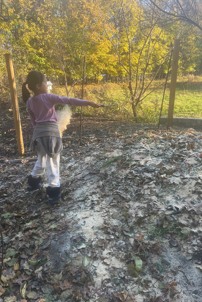 As part of this multi-grade level collaboration, students in pre-kindergarten through second grade were invited to bring food “scraps” from home to assist in the creation of a “lasagne”or mulch layering garden. Students learned that in a lasagne garden, there is a combination of brown (carbon) and green (nitrogen) layers. The brown for our lasagne garden was from leaves and sawdust from the woodworking department. The green can be fruit and vegetable scraps or coffee grounds, which came from the student contributions. This is a way to create highly nutritive soil in a fairly short period of time. Students in all four grades worked in the garden and added their class’s nitrogen layer contribution. When first graders begin their “three sisters garden” in the spring, they will have fertile soil for their corn, beans, and squash to thrive.