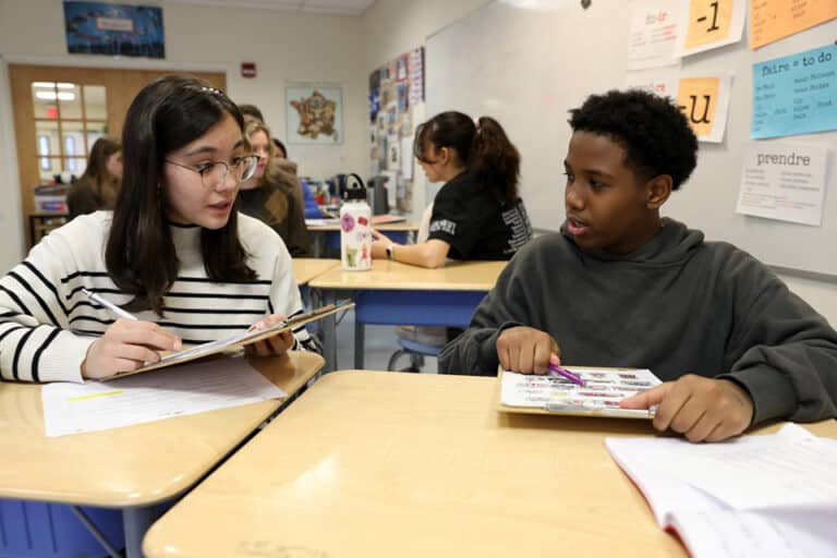Eighth grade French students have been talking about family dynamics around household chores. Last week they had role-play family discussions about who should do which chores and why. This week they are learning how to describe what they appreciate in a house. They played a game where they described a house to their partner, who had to figure out which one they were describing. Next week they will explore a French version of Airbnb and play the roles of realtor and buyer.