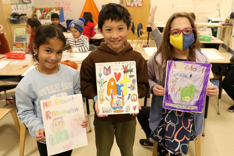 First graders are finishing their “All About Books” in writing. First graders began this writing project by brainstorming their “expert” lists: different topics that they know a lot about and topics they are excited about. They then chose different topics and began planning the parts and sub-topics of their books. As they wrote, they revised their work and added sketches. First graders then spent time adding more detail to their work and editing their writing by looking at punctuation, spelling, upper and lower case letters, and handwriting. In the final stages of their project, writers began publishing their work. They carefully copied over their work from their first draft to their final copy and added illustrations. To put the finishing touches on their books, writers created an “about the author” page and thoughtfully crafted covers that included the author’s name, picture, and title. First graders are excited to publish their books and showcase them very soon!