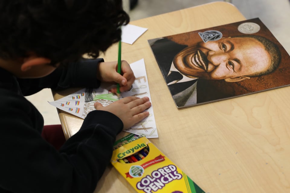In celebration of Dr. Martin Luther King, Jr. Day, the second grade class read Doreen Rappaport and Brian Collier’s bold and vibrant pictorial biography, Martin’s Big Words: The Life of Martin Luther King Jr. We discussed how powerful words can bring about change. We are creating a second grade banner to celebrate Dr. King’s legacy and remember what a gift it is that “his big words are alive for us today.” We brainstormed a list of words that remind us of Dr. King’s work, such as justice, hope, together, and peace. Each student will design a flag featuring one of these powerful words. We will continue to highlight the importance of equality, love, and understanding in our community as we honor Dr. King’s service to all.