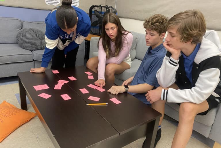A main concept of students’ work in Latin is understanding the idea of Latin as an inflected language, i.e. a language in which the ending of a word determines its meaning and function, not its placement in the sentence as in English. This week in seventh grade Latin, students examined the relationship between verbs and pronouns while keeping the idea of inflected language in mind. Using manipulatives, a catchy song, and repeated practice, students are reviewing and learning personal verb endings, recognizing new pronouns, and identifying the verb as the subject even when the subject is not clearly stated in a sentence. We will then enhance our understanding of conjugating verbs and inflected language by intentionally shuffling the words, removing pronouns, and omitting subjects in Latin sentences to continue decoding meaning.