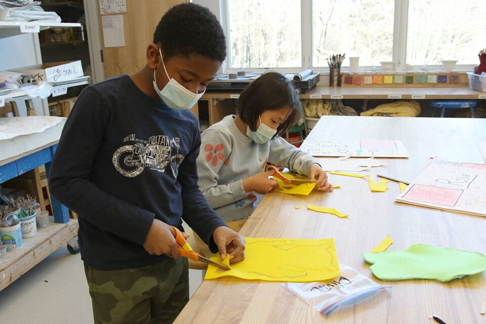 When the third graders were asked to identify ‘real life superpowers’ for a new exploration in the art studio, they generated a long list that included those words. They had no problem coming up with words, as in their classrooms they had just chosen their intention word for the new year, and had added three action steps to help them focus on their intention. In the art studio, students chose an additional intention word–a ‘real life superpower’–as a basis for a power plushie, or unique stuffed creature that they would then create. To begin the lengthy process, students sketched ideas for their power plushie and sought feedback from their peers; they made adjustments and finalized their design ideas before cutting out a paper pattern, or template for their creature. Students then traced their pattern onto two pieces of felt–one for the front, and one for the back–before tracing and cutting out detail pieces. Next week we’ll begin sewing; students will practice the whip stitch and backstitch on paper first, and then will stitch the pieces of their power plushie together. Look for these colorful and special stuffies after February break!