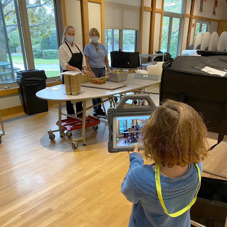In my kindergarten cohort, we kicked off our unit on communities. We had an introductory discussion on the features of a community and listed some of the small and large communities we belong to, such as our cohort, a grade level, sports teams, our school community, our neighborhoods, places of worship, and much more. We settled on a definition of community as “a place where people live, work, or play together.” The kindergarteners spent some time on Thursday going around the school campus with our iPads, indoors and outdoors, searching for examples of communities. When a child spotted an example, they gave a silent cheer and the whole cohort paused as they took a photo. Some communities we observed were two administrative heads having a brainstorming conversation, the kitchen crew preparing lunches for the school, and different classes learning in the classroom or playing together on Big Blue or the fields. When the children returned to the classroom, they made an audio recording explaining why the subject of their photo exemplified the notion of a community.