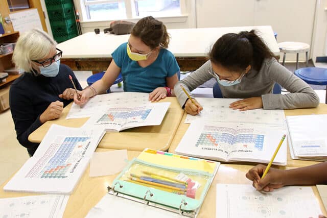 In their science classes, sixth grade students have been learning about atoms, elements, and the periodic table, which will help set the foundation for diving into future units this school year including astronomy and electricity. This week, students have been working on Bohr diagrams to help them better understand how the periodic table is organized. We’ve found in class that we’re also not opposed to some corny science jokes! For example, “Why can you never trust an Atom?” … “Because they make up everything!” Ask a sixth grader about our wall of bad science jokes. It will keep growing as students learn more and make up new jokes.