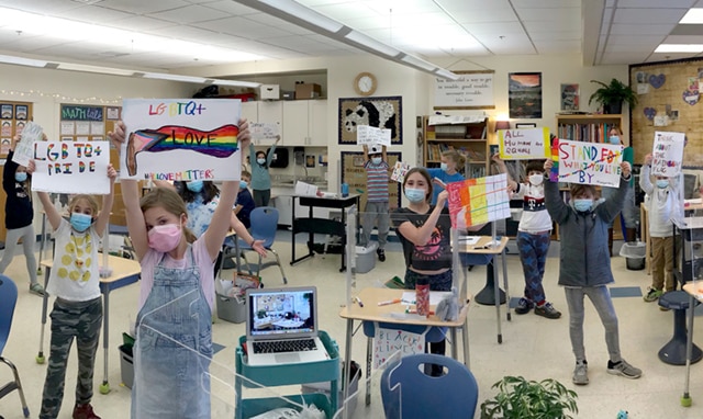 Third graders recently finished reading, Book Uncle and Me by Uma Krishnaswami, a story about a young girl who loves to read and is empowered to support the kind man who offers free books to the community. She helps him to keep his book cart when others were making it difficult for him. Students read and discussed many other books about social justice issues and thought about the issues they care deeply about. They are creating protest posters to amplify the voices of underrepresented communities and folks who need us all to advocate for equity and empathy.