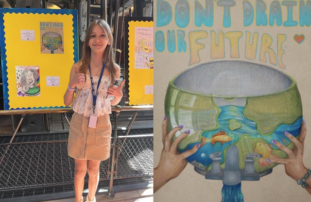 Congratulations to eighth grader Lydia Scharer who won first place in this year’s MWRA (Massachusetts Water Resources Authority) poster contest. There were over 2,000 submissions! This year, the contest theme was water conservation. The contest winners were honored at an awards reception at the Metropolitan Waterworks Museum on Friday, May 26, and all winning entries will be on display at the museum through September 29, 2023.