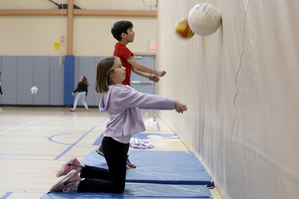 PE Update: Hoops and Serves In physical education classes, students have been rotating through two classic units the last few weeks: volleyball in the Downing and basketball in the Barn. In one sport, the ball isn’t supposed to touch the ground, and in the other, it has to touch the